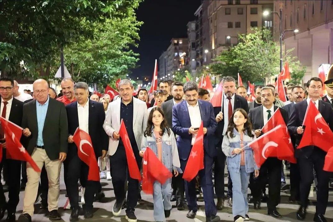 15 Temmuz Demokrasi ve Milli Birlik Günü Anma programları kapsamında; hain darbe girişiminin 8. yıl dönümü münasebetiyle Valimiz Sn. Yılmaz Şimşek, Milletvekilimiz Hakan Aksu, Belediye Başkanımız Adem Uzun, il protokolümüz, şehit ailelerimiz ve gazilerimiz ile katılım sağlayarak Tren Garı önünden başlayan yürümüş kent meydanında sonlandırdık.