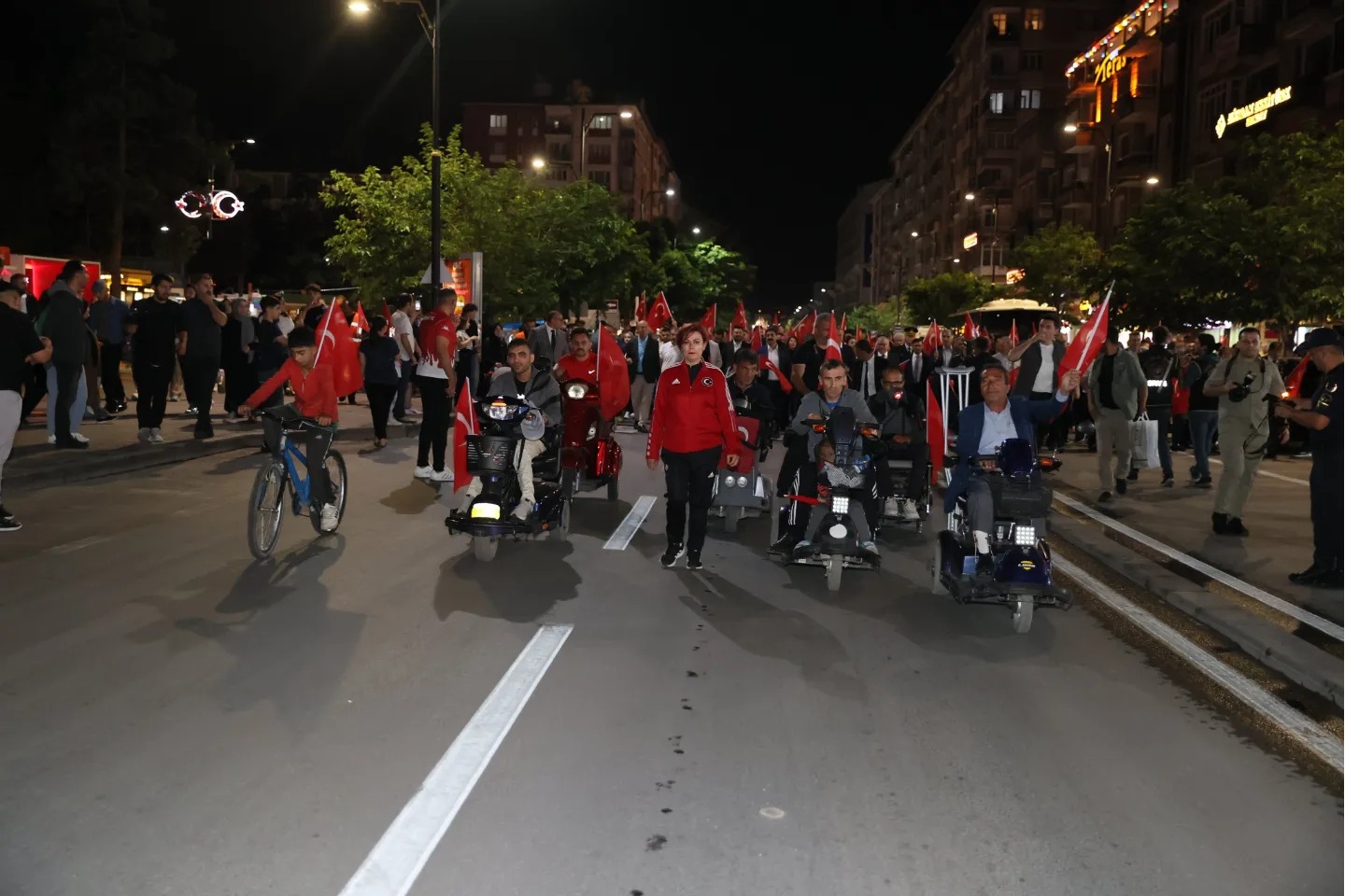 15 Temmuz Demokrasi ve Milli Birlik Günü Anma programları kapsamında; hain darbe girişiminin 8. yıl dönümü münasebetiyle Valimiz Sn. Yılmaz Şimşek, Milletvekilimiz Hakan Aksu, Belediye Başkanımız Adem Uzun, il protokolümüz, şehit ailelerimiz ve gazilerimiz ile katılım sağlayarak Tren Garı önünden başlayan yürümüş kent meydanında sonlandırdık.