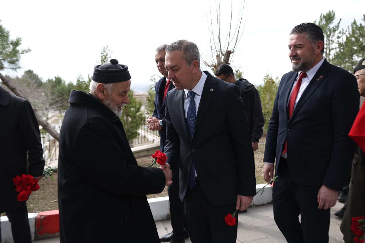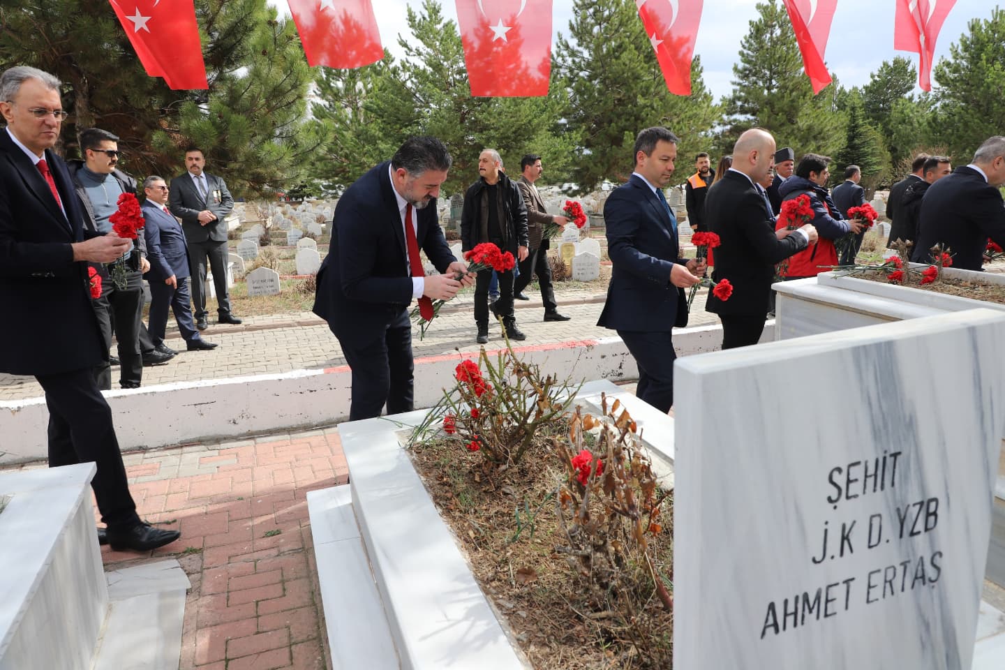 Sayın Valimiz Yılmaz Şimşek, Garnizon 5’inci Piyade Tugay Komutanımız Piyade Albay Cüneyt Mutlu, Belediye Başkanımız Adem Uzun ve protokol üyeleri ile birlikte, aziz şehitlerimizin anısına çelenk sunduk. Ardından, şehit ailelerimiz ve gazilerimizle birlikte şehitlerimizin kabirlerini ziyaret ederek dualar ettik ve naaşlarına karanfiller bıraktık.