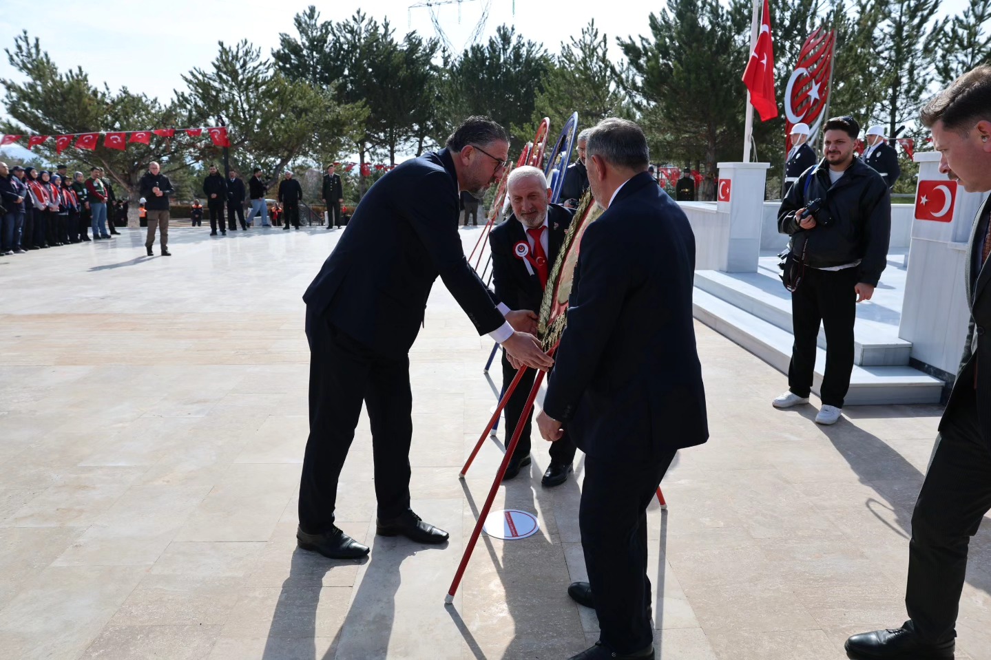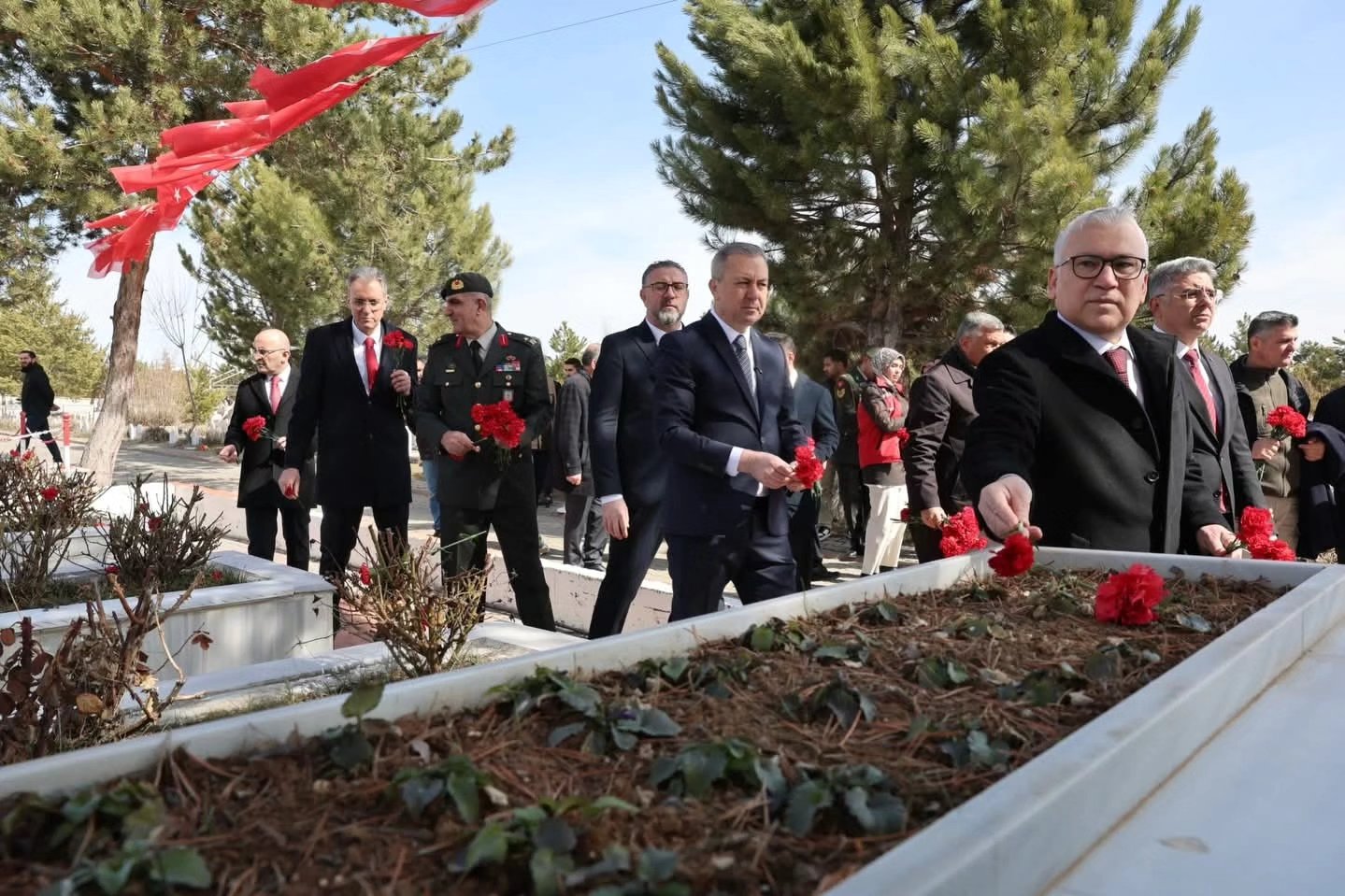 Valimiz Sayın Yılmaz Şimşek, 5. Piyade Eğitim Tugay Komutanımız Tuğgeneral Zeynel Abidin Alptekin, Belediye Başkanımız Adem Uzun, il protokolümüz, kıymetli şehit ailelerimiz ve kahraman gazilerimizle birlikte Şehitler Anıtı’na çelenk sunumumuzu gerçekleştirdik.